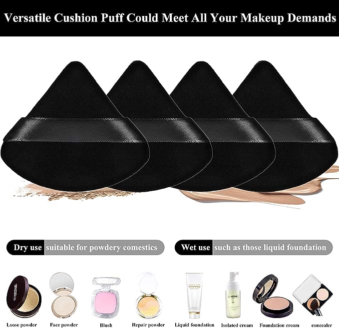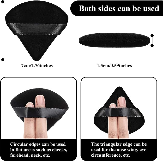 - Diverse usages: our triangle shape powder puffs are suitable for dry and wet cosmetics, such as foundation, blush, loose powder, powder, body powder, concealer and more, easy to apply on the nose or eyes, but if you wear this puff, it could delicately apply your makeup