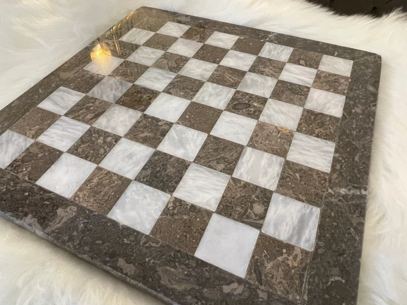 The white marble is bright color stone that has hue of gray and yellow in some of its variations. This provide a beautiful contrast in the chess set and chess pieces look more beautiful than ever.