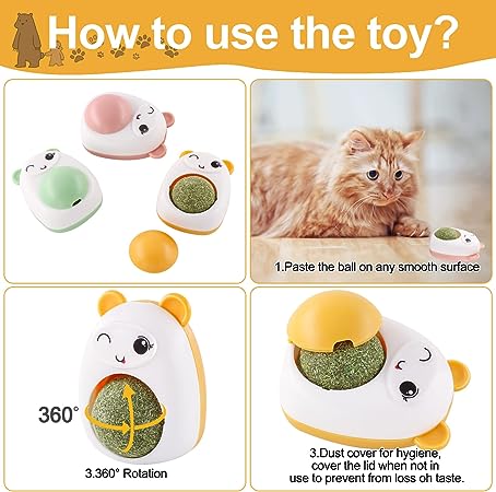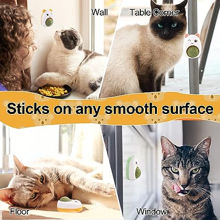 • 💪💪【Firm adhesive】Catnip ball can be pasted on any smooth and flat surface, such as walls, glass, table corners, ground. Allows cats to play and lick the catnip ball toy without worrying about falling off.