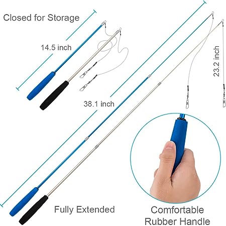 • Retractable and Flexible: The cat toy wand extends from 14.5 inch to 38 inch easiler. It can be retracted to smaller size after play, easy to store. It is flexible and durable, even with an aggressive cat. The soft and skid-proof foam handle makes the teasing process more comfortable and easier.