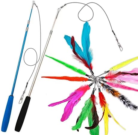 • Good Quality and Non Toxic: Cat feather teaser toy is made from safe, non-toxic, eco-friendly material. Our feathers are all nature and all dyes are non-toxic. It is safe and enjoyable for your cats.