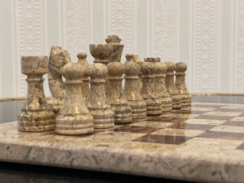 Beautiful Handmade Marble Chess Set with 32 Chess Pieces Set for True Chess Lovers