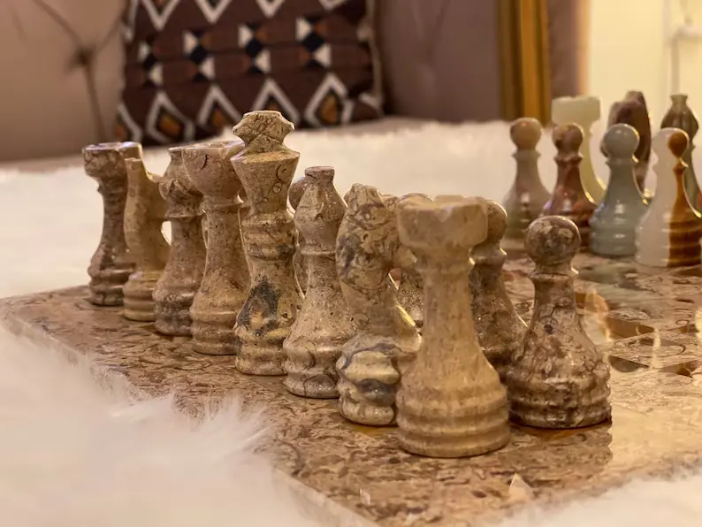 Beautiful Handmade Marble Chess Set with 32 Chess Pieces Set for True Chess Lovers